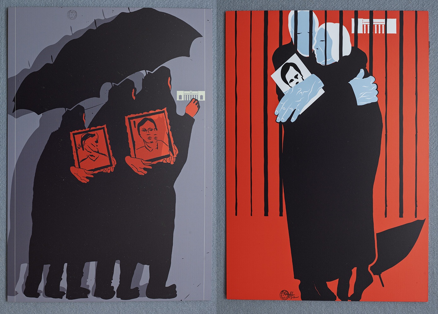 Longing - The artist tells us that in this poster he portrays military units that kidnapped numerous pro-democracy activists in Indonesia between 1997 and 1998. 13 activists were missing up to the point he designed the poster (2017). By staging protests in front of the Indonesian state palace in Jakarta, the families of the victims continue to call for justice on their behalf.
